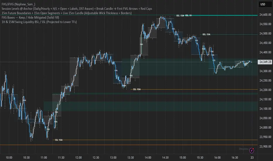 I created this script for so you can add a 15m candle overlay on your lower timeframes, to better view the price action of the 15m candle.