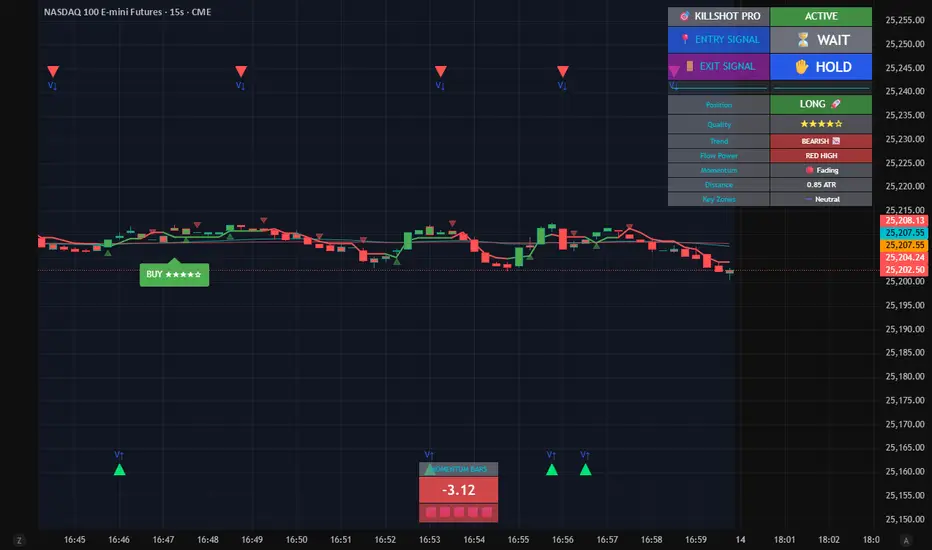 KOBK KILLSHOT PRO is an advanced trading system that combines multiple layers of technical analysis into one powerful, easy-to-use indicator. Whether you're scalping on lower timeframes or swing trading, this indicator provides crystal-clear entry and exit signals backed by comprehensive market analysis.