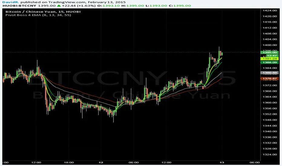 Creates one indicator with four exponential moving averages based off the central pivot point