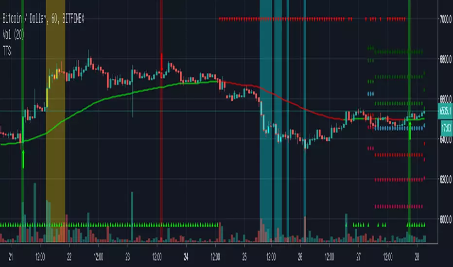 - Overbought & Oversold areas alert marked by background color & candles color.
