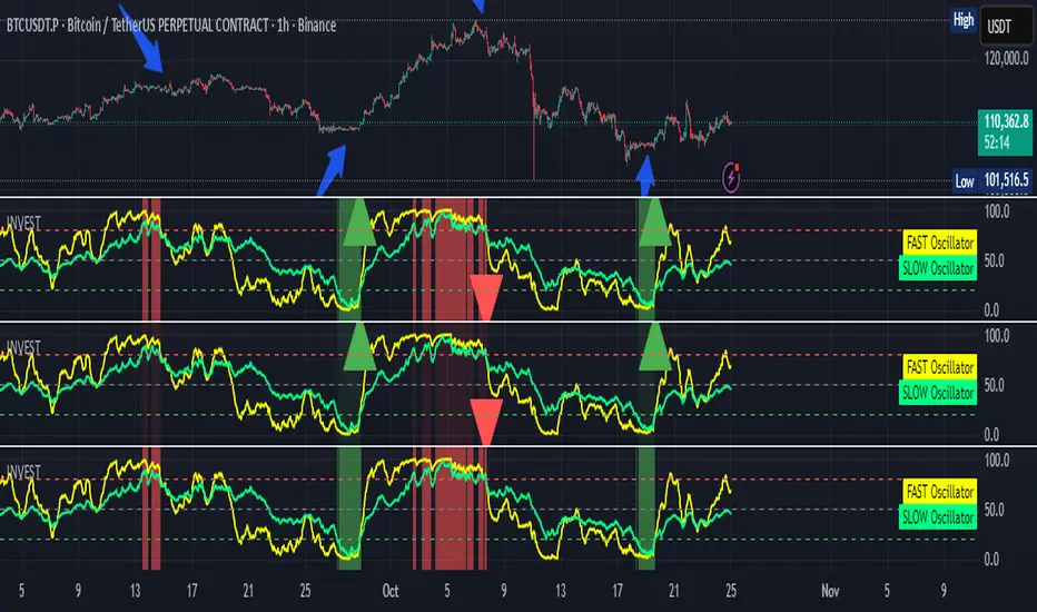 The INVEST indicator combines a dual-speed adaptive trend model that helps identify market strength, exhaustion, and turning zones.