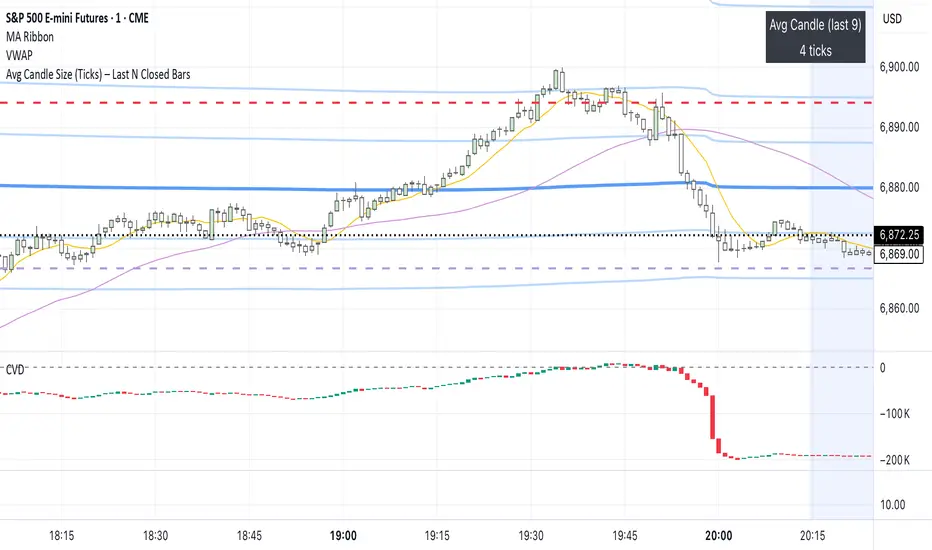 table displaying the average size in ticks of the last N candlesオープンソーススクリプト