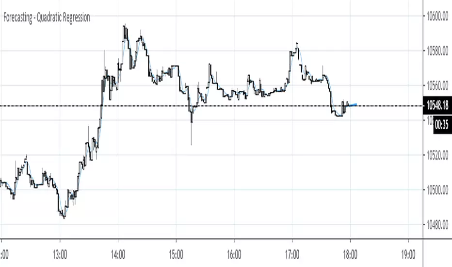 This script is written totally thanks to Alex Grover (tradingview.com/script/CDsPknAG-Quadratic-Regression/). Here it is implemented in conjunction with the seasonal forecast I showed in one of my previous posts. It takes the calculated QReg curve and extends its last section (Season) into the future (Forecasted periods).