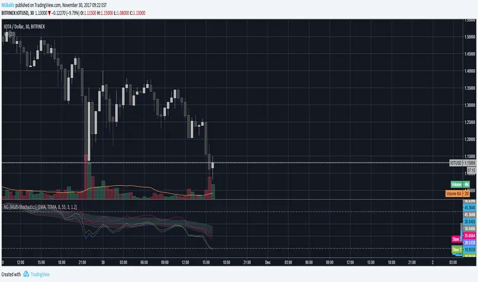 * Possible to chose how to calculate MA of stochastics SMA, EMA, DEMA, TEMA.
