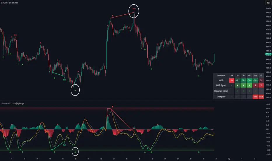 The Ultimate MACD Suite [BigBeluga] is an advanced momentum-based system that enhances the classic MACD with modern features tailored for professional traders.