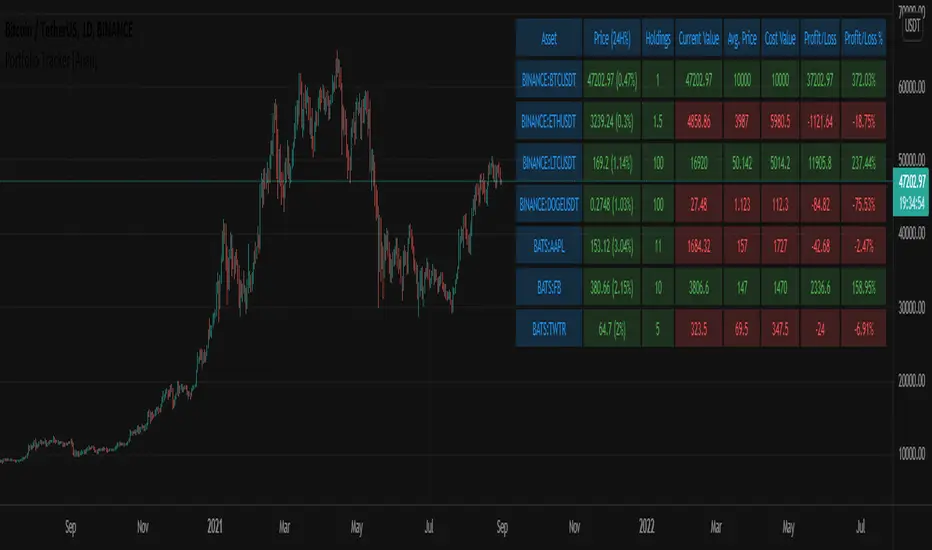 A simple Portfolio Tracker to track your Profit/Loss for any ticker in any market (stock, futures, index, forex, crypto, fund, dr.).