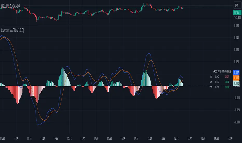 - 既存のMACDインジに1m、5m、15mのMACD数値を表示