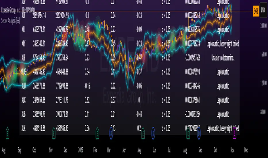 The indicator can actually create a regression based range from closely correlated sectors, so you can see, in sectors that are strongly correlated to your ticker, whether your ticker is over-bought, oversold or has mean reverted.