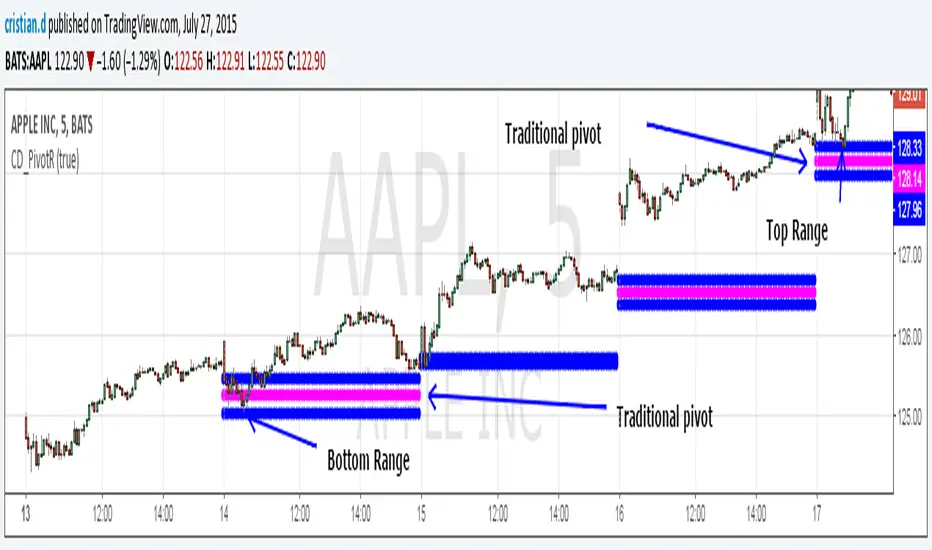 My first attempt to code something. It's Mark Fischer concept of Pivot Range from his book Logical Trader.