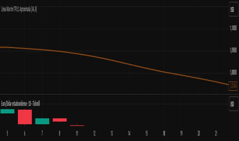 This indicator plots a smooth brown line based on EMA and TEMA, designed to act as a trend reference and pullback zone. Its main purpose is to help identify potential short entries when the upper wick of a bearish candle touches the line, providing a clear visual reference for price action analysis.