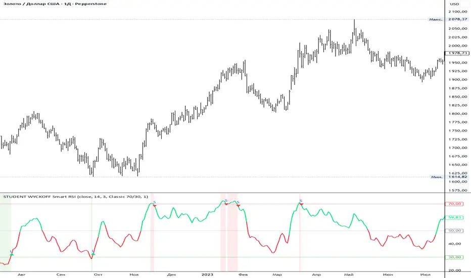 STUDENT WYCKOFF Smart RSI is a flexible, context-driven version of the classic RSI. It is designed for traders who want to read momentum in a more intelligent way than just “RSI above 70, RSI below 30”.