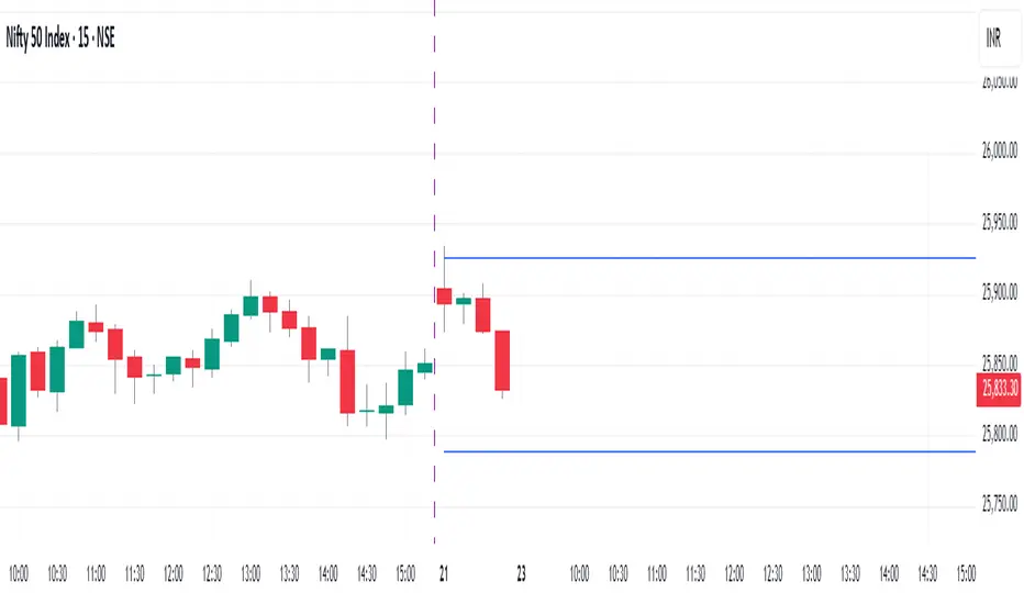 This script Identifies and draw Previous day High low on 15 min Intra day chart