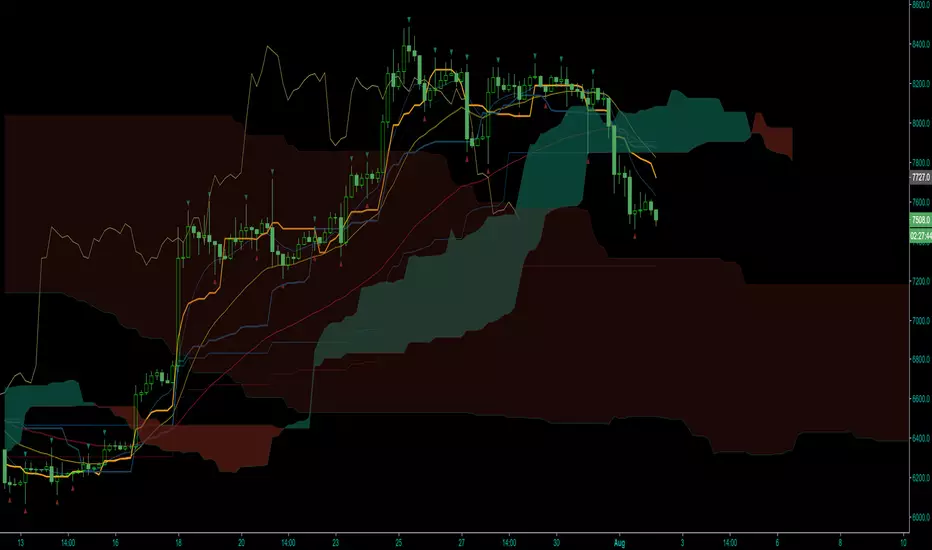 2xIchimoku Cloud + 4xEMA + Williams Fractal