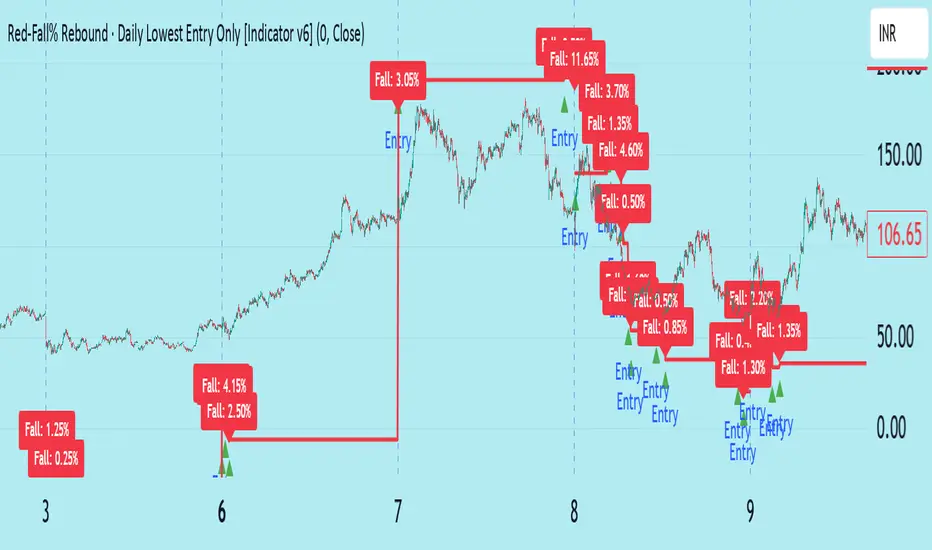 Red-Fall% Rebound · Daily Lowest Entry Only [Indicator v6]