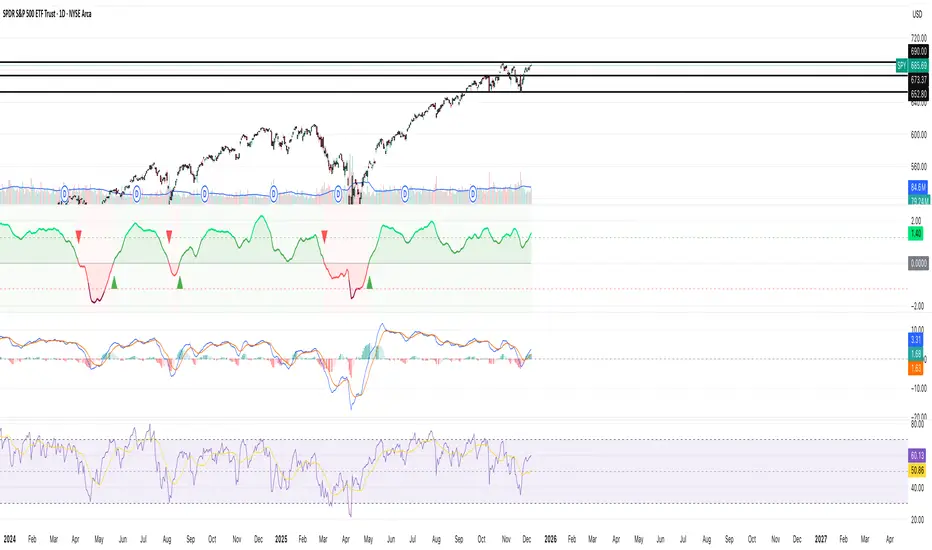 Because everything is Z-score normalized, OBV and A/D are perfectly comparable and weighted (default 50/50). The EMA smooths out daily chop while keeping it responsive.