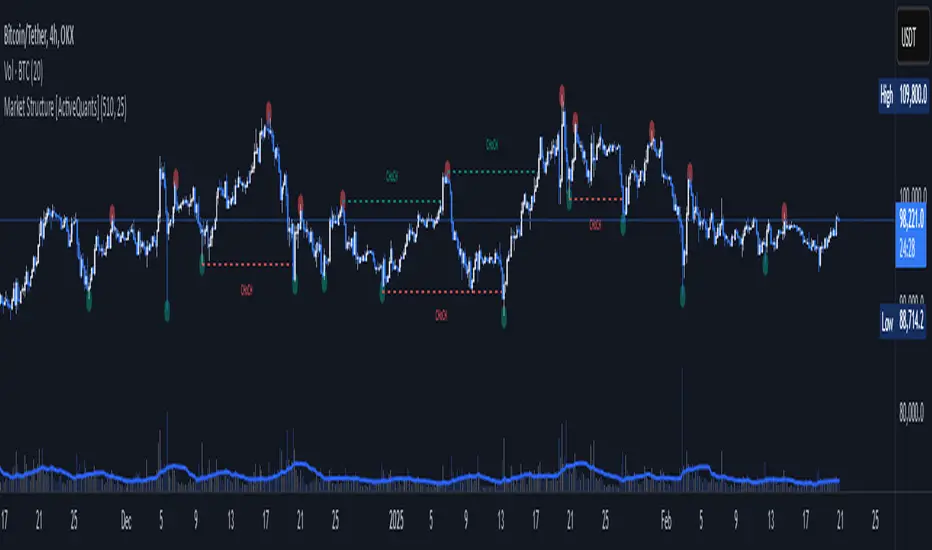 - Market Structure Visualization: Automatically detects and plots pivot highs and pivot lows, highlighting structural points on the chart.