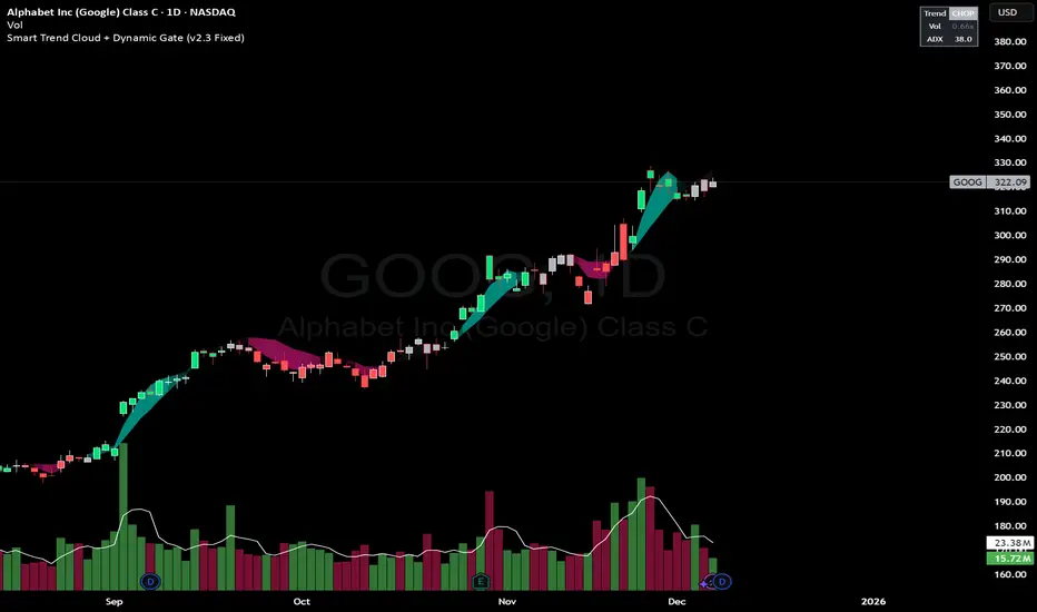The Smart Trend Cloud + Dynamic Gate is a comprehensive trend-following system designed to filter out market noise and identify high-probability trend entries. Unlike simple Moving Average crossovers which often fail in ranging markets, this indicator employs a multi-stage validation system (The "Gate") combining Volume, Momentum, and Volatility filters to ensure you only trade when the market has conviction.