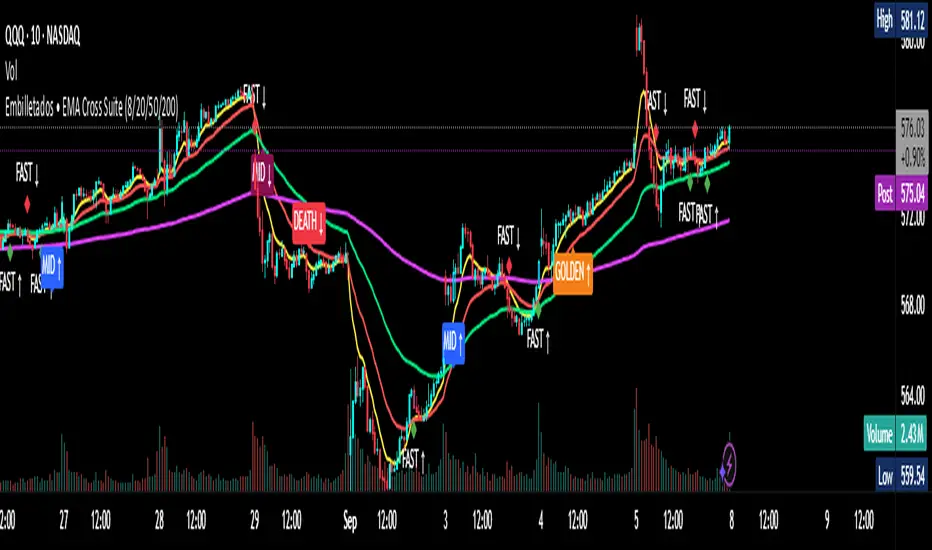 The Embilletados • EMA Cross Suite is a professional trading indicator designed for intraday traders, scalpers, and swing traders.