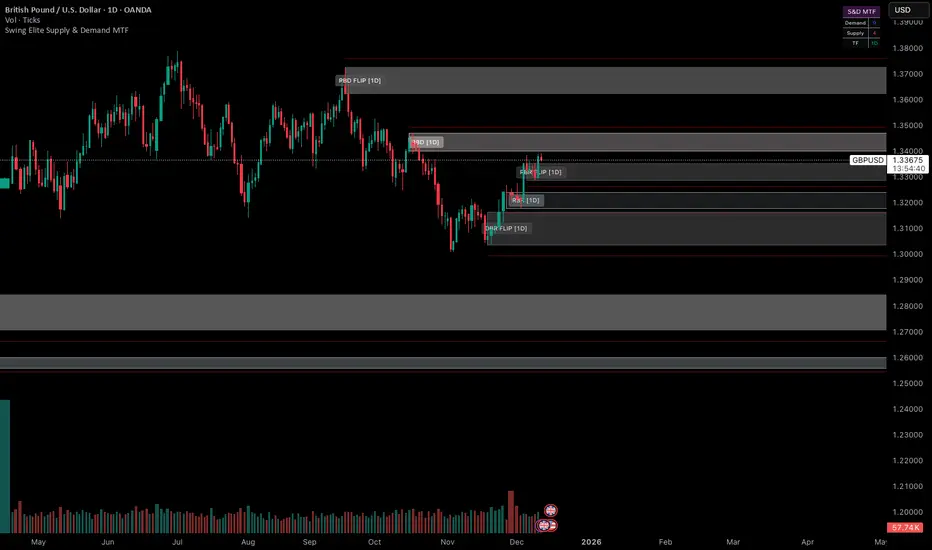 Swing Elite Supply & Demand MTFInstitutional-grade multi-timeframe Supply & Demand system with FLIP logic, Level-on-Level detection, stop-loss padding, and advanced zone mitigation.