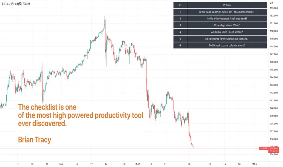 トレード終了後にこのチェックリストと一緒にスクリーンショットを取ることでトレードノートとしても活用することができます。