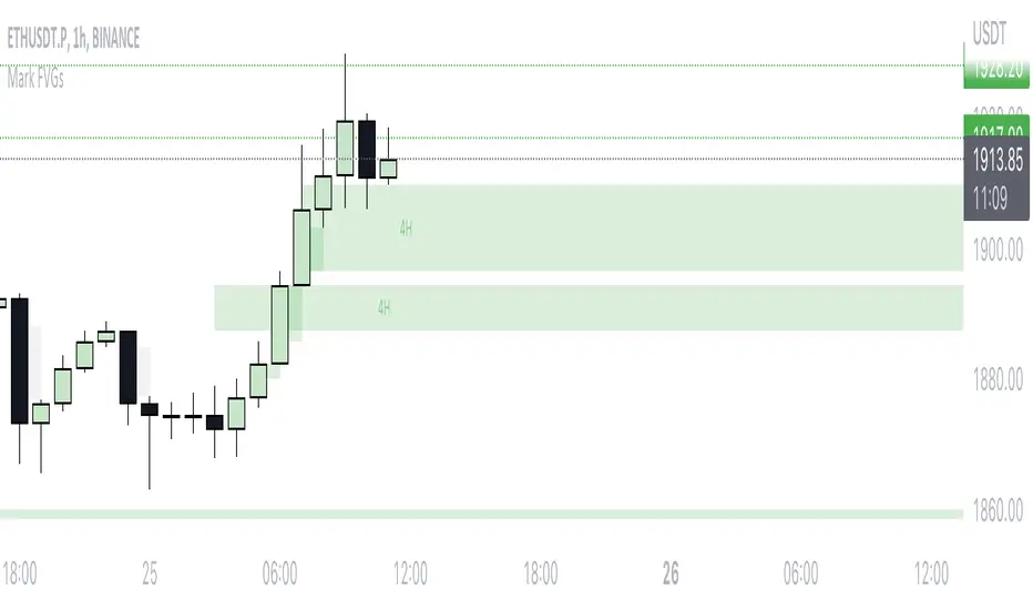Mark FVGs is marking FVG (stands for Fair Value Gap, other name is Imbalance or IMB) on your chart so that you can instantly detect them