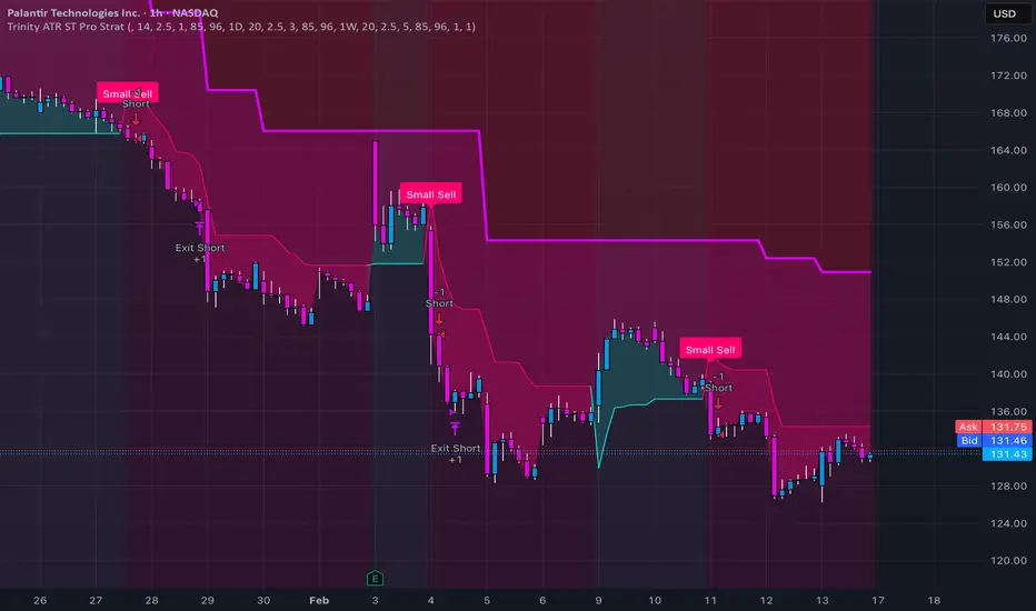 ATR Strategy tester to allow up to 3 ATR's and then backtesting to refine the settings and win rate for based on the commodity and timeframe you want to evaluate include the take profits and stop loss levels