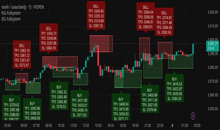 เมื่อราคามีแรงซื้อหรือแรงขายรุนแรง KSL จะสร้าง กรอบสีเขียว (Buy) หรือ กรอบสีแดง (Sell) ขึ้นมาทันที เพื่อแสดงให้เห็นว่า "ตรงนี้แหละ! คือจุดที่ตลาดมีแรงจริง!"
