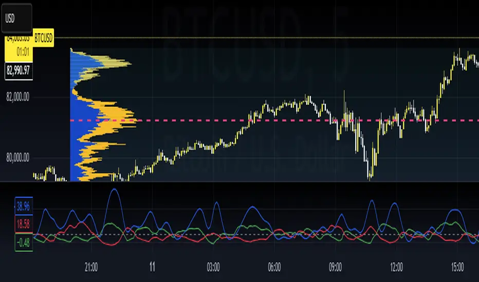 You can put this on your chart versus the tradingview adx and you can adjust the settings to see the difference. This was optimized for btc on the 5 min chart. You can adjust for your trading strategy.