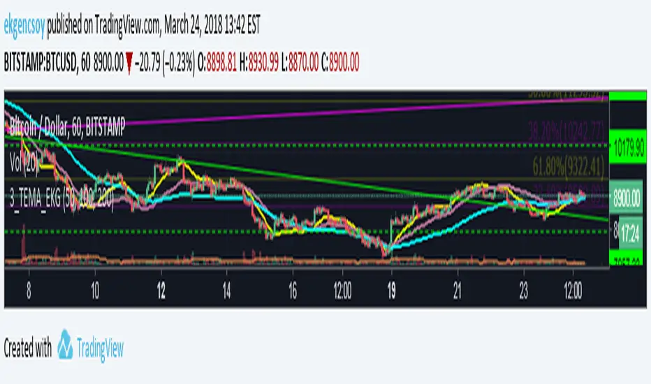 This codes shows three triple exponential moving average (50, 100, 200) in one single indicator