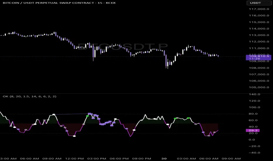 Super Signals (Green/Purple Squares): Appear during extreme overbought/oversold conditions, confirmed by high-volume rejection or liquidation patterns.