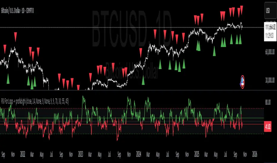 The RSI For Loop is an advanced momentum oscillator that extends traditional RSI analysis with multi-algorithm smoothing capabilities and dual-mode signal generation. It offers flexible moving average layering across nine different smoothing methods including VIDYA adaptive filtering, combined with hysteresis-based state detection or comparative crossover signals for enhanced trend identification and reduced noise.