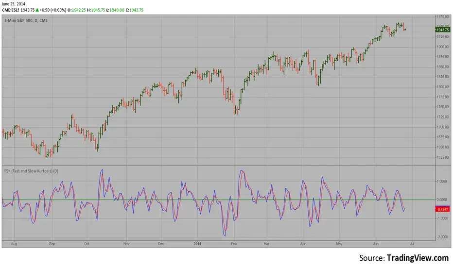 This indicator plots the Fast & Slow Kurtosis. The Kurtosis is a market