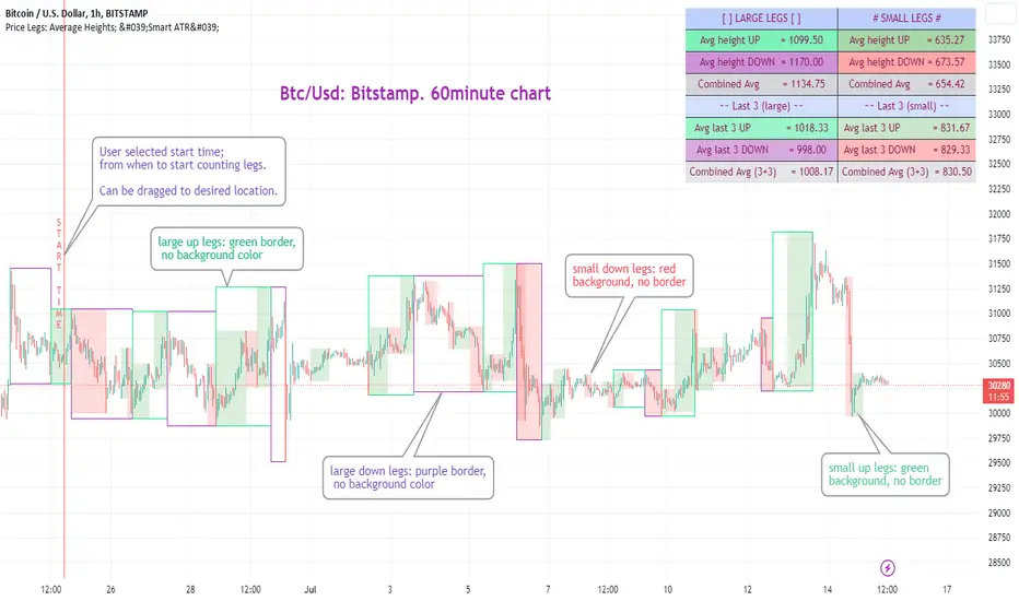 ~~ Indicator to show small and large price legs (based on short and long input pivot lengths), and calculating the average heights of these price legs; counting legs from user-input start time ~~