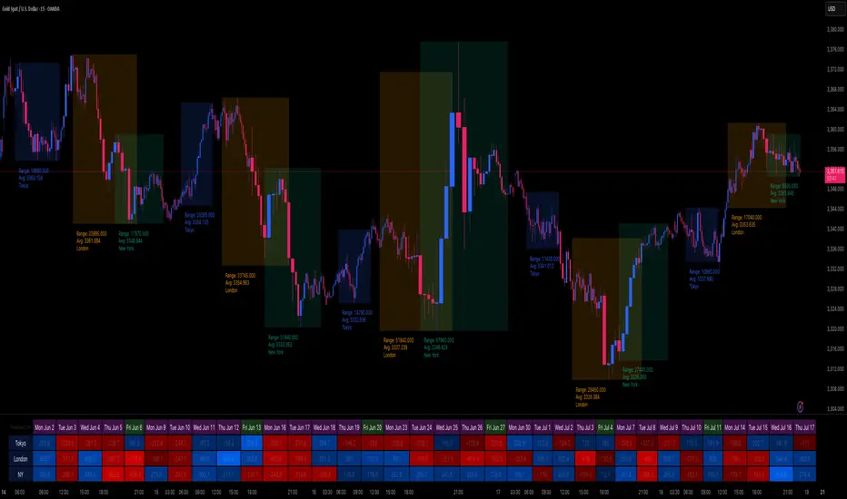 - Session Logic: The script accurately identifies session periods based on user-defined start and end times in conjunction with the selected UTC offset. This ensures the session boxes and data are correctly aligned regardless of your local timezone or daylight saving changes.