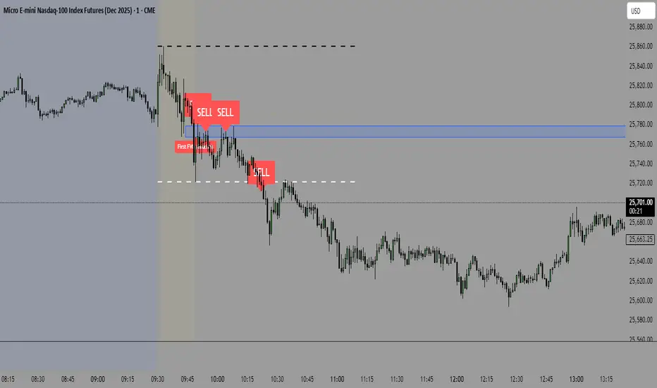 A professional trading indicator designed for 1-minute candlestick charts that identifies Fair Value Gaps (FVG) and Opening Range breakout patterns with precise entry signals for institutional trading strategies.