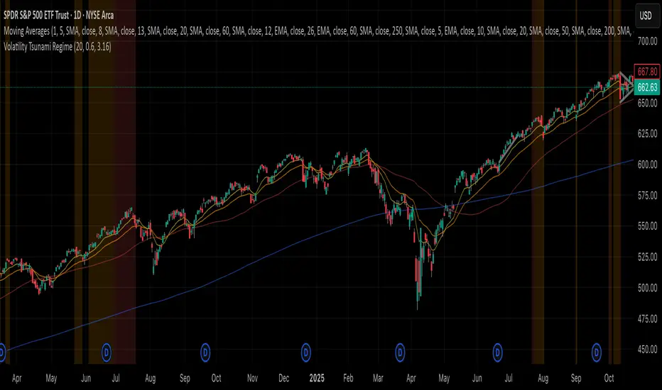 The script pulls data from the CBOE VIX and VVIX indices regardless of the chart you are viewing. It calculates the standard deviation of both indices over a user-defined lookback period (default is 20). If the standard deviation drops below specific thresholds, the script flags the market regime as compressed.
