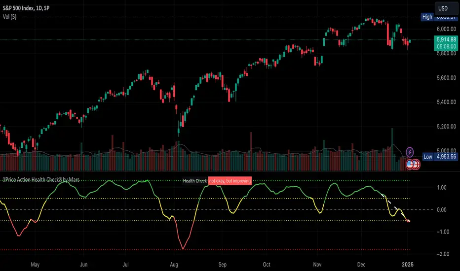 This is a price action indicator that measures market health by comparing EMAs, adapting automatically to different timeframes (Weekly/Daily more reliable) and providing context-aware health status.