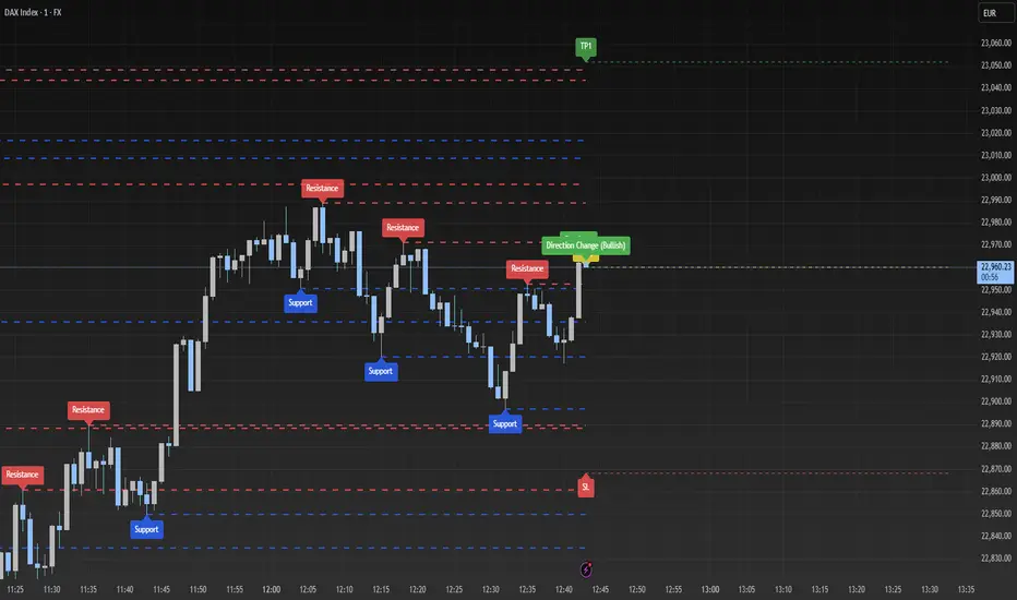Directional Filtering: To avoid conflicting signals, the indicator filters breakouts based on the current trade direction. A new entry in the opposite direction is only set if the price moves a user-defined percentage away from the previous entry or if the previous trade hits its SL, TP1, or TP2.
