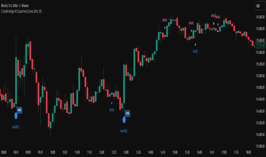 Z-Candle Range 4U highlights these extreme candles directly on your chart, providing a clear view of where volatility is expanding or contracting.