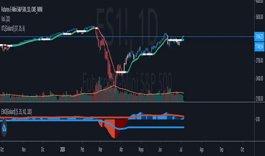 if price is in an uptrend, and this uptrend has been stronger over the previous five candles relative to the previous 35, then the EWO will be positive. If price is in an uptrend, but price has been in a stronger overall uptrend over the past 35 candles relative to the previous five, the EWO will be negative. Likewise, we can apply this to downtrends.
