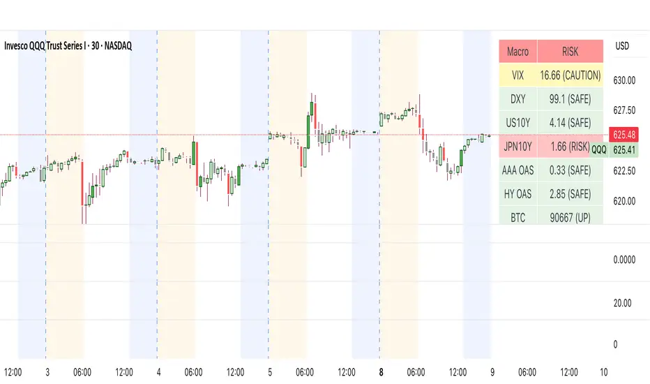 With this indicator you will be able to understand what the (vix, btc, triple aaa, dxy) looks like before entering market in one glance, it will act more like market thermometer.