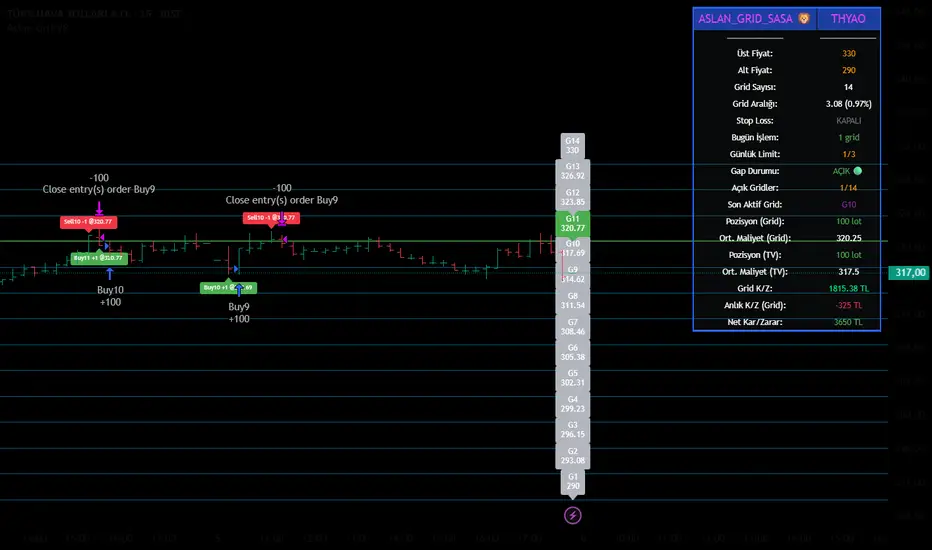 Fiyat dalgalandıkça gridlerden ucuz al – pahalı sat, ama günlük limit, gap ve SL ile kendini koruyan gelişmiş bir grid stratejisi. NOT: 20 GÜN DENENEBİLİR SONRASINDA KALDIRILACAKTIR.SONRA KULLANMAK İSTEYEN YAZABİLİR