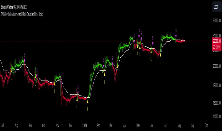 EMA-Deviation-Corrected N-Pole Gaussian Filter [Loxx]