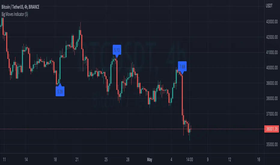 This indicator marks big candles (major moves in percentage) on the chart and, more importantly, you will be able to add an alert to them.