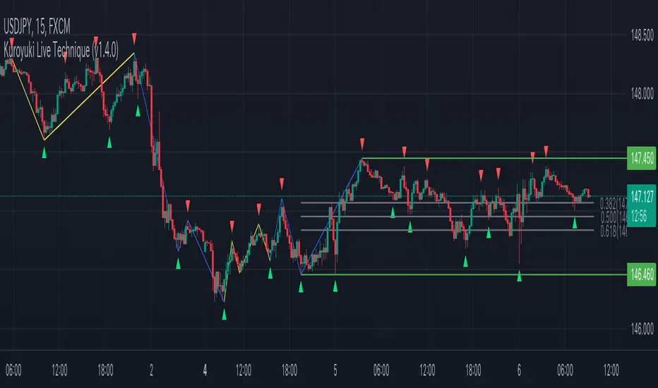 クロユキさんLive手法で使用されているインジケーター「Pivot High Low Points」をベースに、アラート機能を追加したインジケーター