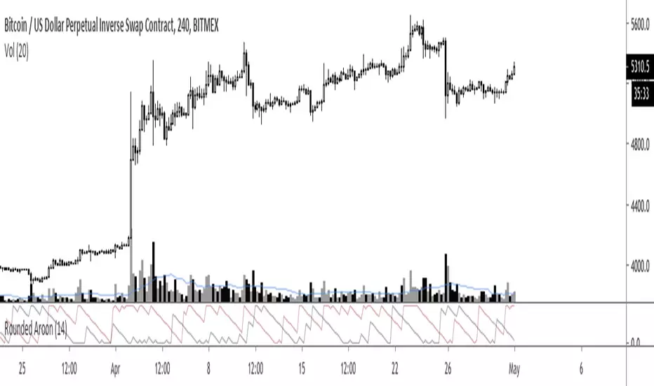 This is a very simple modification to the standard Aroon. The normal Aroon measures trends from the high and low of a particular candle, or the wicks. The rounded Aroon here simply uses open and close instead. The benefit of this is that it helps determine a more significant trend as in some cases a wicked candle doesn't give adequate data at times.