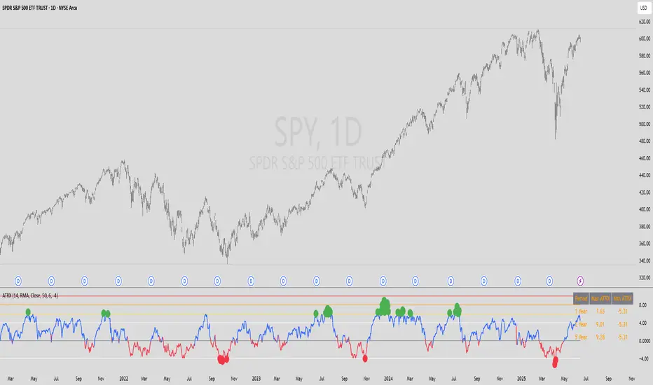 Added display of minimum and maximum ATR% multiple extension values within 1-year, 2-year, and 5-year periods.Users can now define and visualize custom threshold markers (dots) for both minimum and maximum ATR% multiple extension levels on the chart.