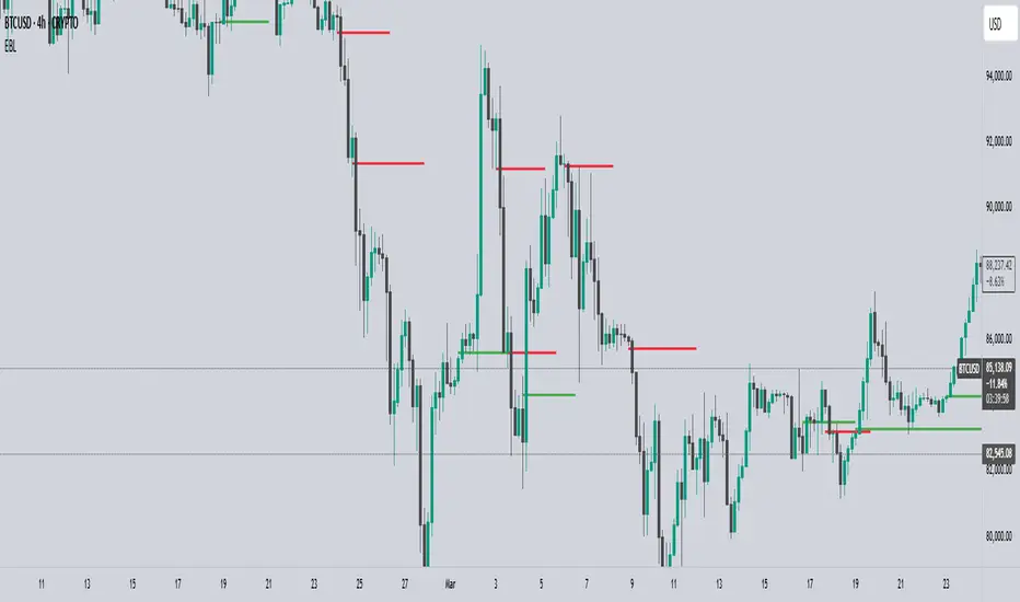 EBL looks for a bullish candle followed by a bearish one (or vice versa). This pattern suggests a potential structure point where momentum may have peaked or bottomed temporarily.