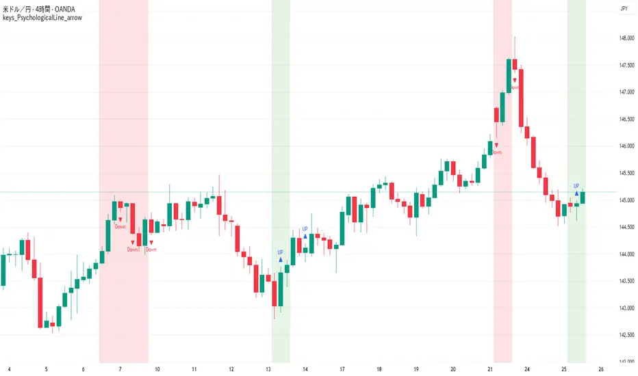 サイコロジカルラインから逆張りを狙った矢印が出るインジケーター