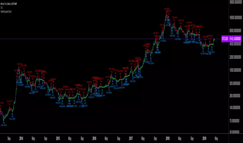 The strategy is shown here on BTC /USD with settings of 12/1.8 (the defaults are 9/1.8). It shows the system under its best light. Other markets will most not reproduce such results. Also, the drawdown is as scary as the results are impressive.